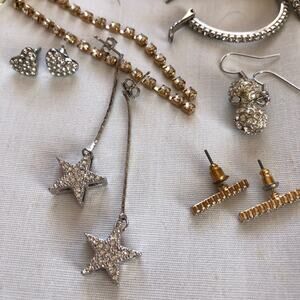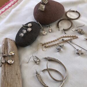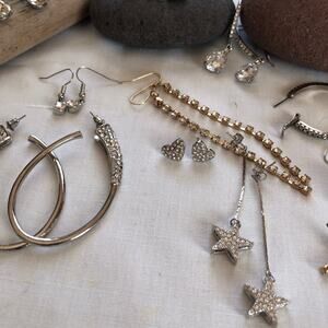 Bundle of 13 Earrings Silver tone Rhinestones Formal Prom Wedding Special Event