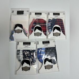 Bundle of 15 Face masks 2-ply 5 packs/ 1 kids size, 3 adult size L, 1 adults M