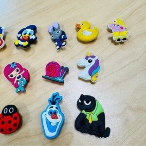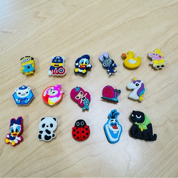 Fun and colorful bundle of 16 assorted character-themed shoe charms, perfect for Crocs or similar clogs!