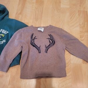 brown antler sweater is in like new condition. adorable elbow patches. Great for fall amd hunting photos with dad.