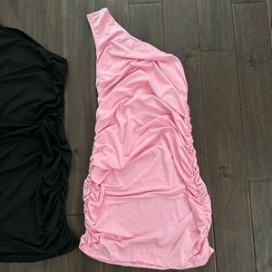 NWOT Bundle of 2 Black and Pink One Shoulder Ruched Mini Dresses. Size XL.