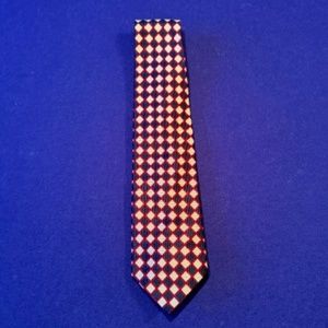 A bundle of two Faconnable mens ties, one in dark blue, red, and grey checkered pattern, and one dark blue with small gold tear drop print throughout. These ties are in like new condition, and are the perfect addition to any outfit, 58" long 3.5" wide