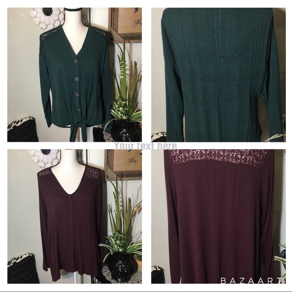 Save on shipping both tops are size large. Both are similar fabric. Two different styles, both in very good gently preowned condition. See photo for material details