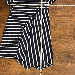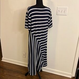 Bundle of 2 Lane Bryant Blue and White & Gray Asymmetrical High-Low Sundresses. These casual sundress features a striking asymmetrical high-low hemline, perfect for a relaxed day out. The scoop neck and short sleeves add to its comfortable and stylish design. Both the gray dress and the blue and white color combination offer a fresh and timeless look. An excellent addition to any closet!