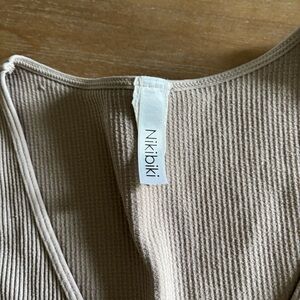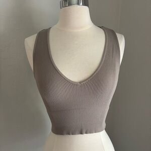 Bundle of 2 NikiBiki Seamless Ribbed Plunge Neck Cropped Tanks Taupe & Wine, Med
