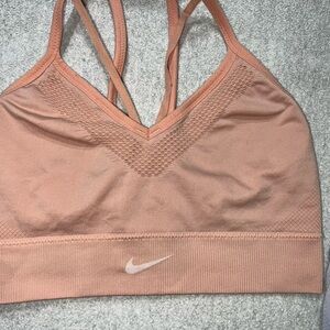 Experience comfort and style with Nike's women’s sports bras'. Available in peach and lavender, these pieces offer a perfect blend of support and elegance.