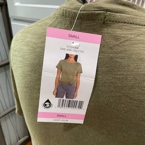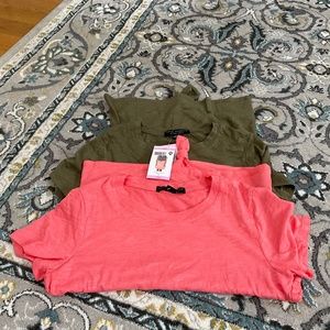 Bundle of 2 Social Standard Knot Front T-Shirts, NWT. Never worn. Both have tags. One army green, one small. 51% cotton, 49% rayon. Made longer in front so that it is tied in a know. Great summer set of tees.