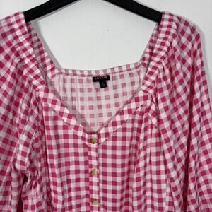 Torrid Button Front Gingham Pink Buffalo Check Square Neck Rayon Blouse Shirt Top
