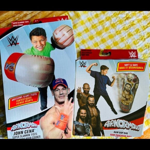 Bundle of 2 WWE AIRNORMOUS INFLATABLE SMACKDOWN BOP PUNCHING BAG/GIANT FISTS NEW