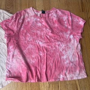 Bundle of 2 Women’s Cropped Short Sleeve Tees Pink and Tie-Dye T-Shirts Size M/L