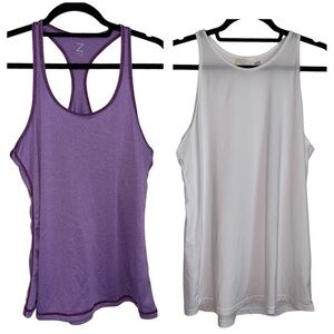 Bundle of (2) ZELLA Athletic Workout Tank Tops- Purple/ Stripe/ White