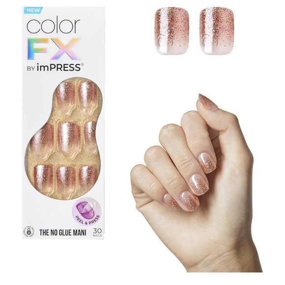 • Style: Color FX Press-On Nails in shimmering rose gold glitter ombré design