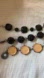 The one with peachy cream stones has a magnetic clasp and is approximately 7” long. The 2 bracelets with black stones are both 7.5” long and have lobster claps.