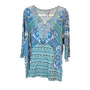 Bundle of 3 Catherine's Womens Tops 3X Tank & 3/4 Sleeve Blue, Black, Beaded