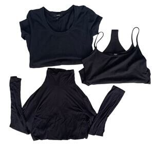 Expand your basics collection with this bundle of three Forever 21 Plus Size bodysuits in classic black. Each bodysuit offers a unique style: one features a sleek turtleneck, another a scoop neckline with short sleeves, and the third a cami-style with spaghetti straps. These versatile pieces are perfect for layering or styling on their own, making them a wardrobe essential.