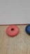 Set of three round 2" beads in white, salmon/coral and blue. Perfect for crafting or jewelry making. These are brand new but not in perfect condition.