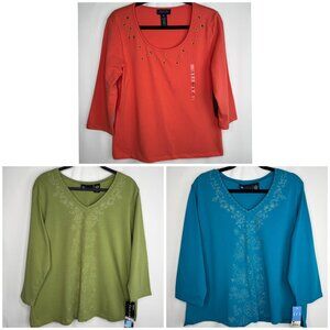 Bundle of 3 NWT New With Tags 1X/XL Womens 95%+ Cotton Blouses with 3/4 Sleeves