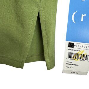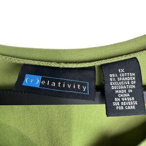 Keywords: women's tunic top, embroidered tunic, long sleeve top, v-neck tunic, plus size tunic, green tunic top, casual tunic, cotton blend tunic, stylish tunic, relativity top, 1X tunic, comfortable top, floral embroidery top, bundle of cotton tops