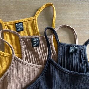 Bundle of 3 Ribbed Cropped Layering Tanks Black, Goldenrod & Mocha, Medium
