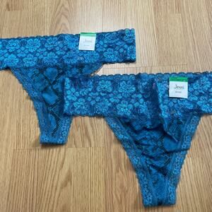 New with tags bundle of 3 thong panties from Jenni, size L. Two are a teal wide lace waistband with snake print body, and one is a black and white constellation print. All have plenty of stretch for all day comfort and are new with tags.