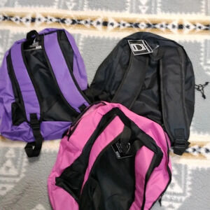 Bundle of 3 classic backpacks new w tags pink, purple and black