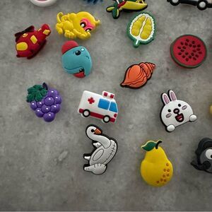 NWOT Bundle of 33 Assorted Shoe Charms. Includes 4 Bunny erasers. May be worn with Crocs brand shoes.