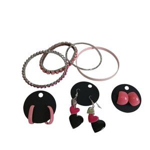 Bundle of 4 Bracelets & 3 Pairs of Earrings Pink Fashion Jewelry Fair Condition