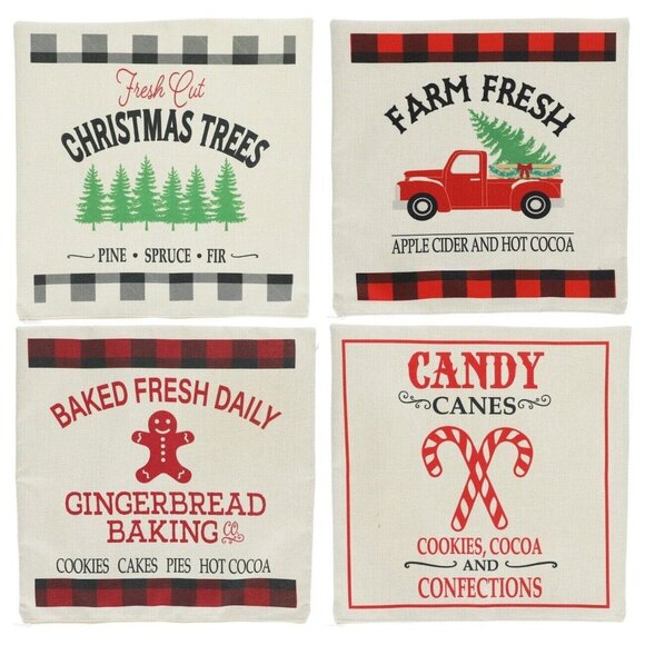 Few pictures are stock photos, but the last few are of actual pillow cases. Packaging is a little wrinkled. Delight your family and house guests with these festive Christmas pillow cases! Choose among 4 designs: Fresh Cut Christmas Trees, Farm Fresh Apple Cider and Hot Cocoa, Baked Fresh Daily Gingerbread Baking, and Candy Canes. These 15.75-in. x 15.75-in. cozy pillowcases bring in the holiday spirit and cheer. Great for White Elephant parties, stocking stuffers, and more