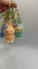 Set of keychains featuring cute characters in green, white, blue, and yellow. Perfect for adding charm to your keys.