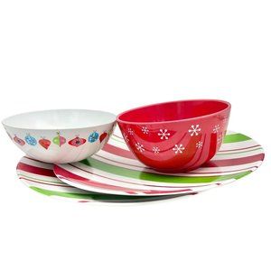 Bundle of 4 Pieces Melamine Mixed Christmas Dishes Bowls and Plates