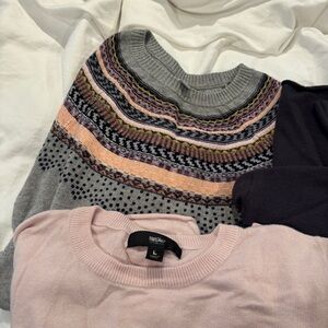 4 sweater bundle, if interested can break the set apart. Different styles abs colors as seen in photos. Have other sweaters listed in my closet- feel free to suggest a bundle and I’ll give you a good deal and you only pay 1 shipping fee!