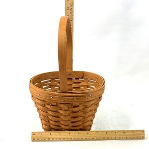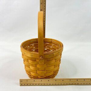 1992 Discovery Basket, round, stationary handle: 5.5" x 3.5" x 6.75" tall with handle