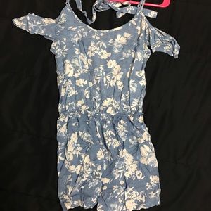 4 different rompers. All only worn once or twice. Blue one has a tie belt to go with it. The last two have pockets. Darker pink one with detail is from Francesca’s. All size small except the lighter pink one is an xs