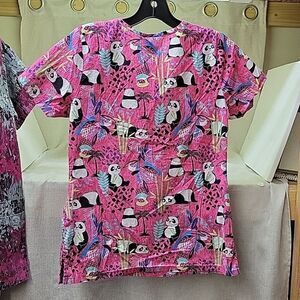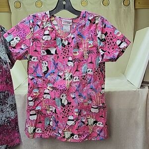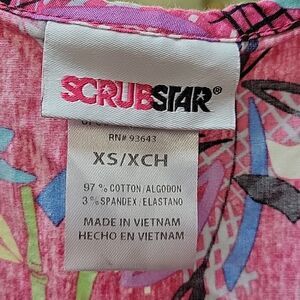 Bundle of 4 scrubs: 3 tops,1 pant,: Peaches, Landau and Scrubstar brands size XS. Pants..small, Spread good Cheer brand. All in great condition. Smoke free and pet free home.