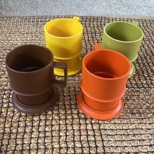 Bundle of 4 Vintage Tupperware Cups with Lids/Saucers
