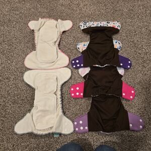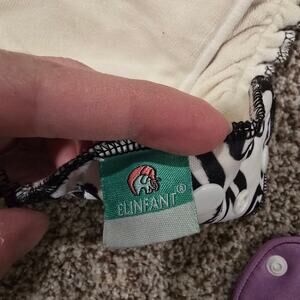 Bundle of 5 Elinfant cloth diapers - 3 of these are just the covers (no inserts) and 2 of them are All in One with snap in inserts. These do have some minimal staining/discoloration on the inserts.
