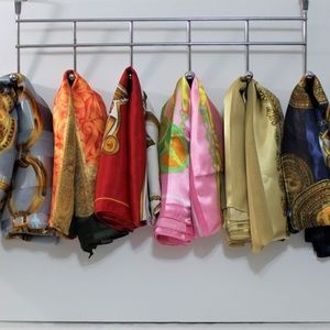 Nwot 1 Grey & Gold 40 inches square ,1 Black & Orange 40X40 inches 1 Vintage Nautical Daniel 1950 35 inched square.1 Multi Pink 39" 1 Blue & Gold 40".1Brown & Gold 40" .