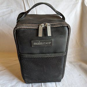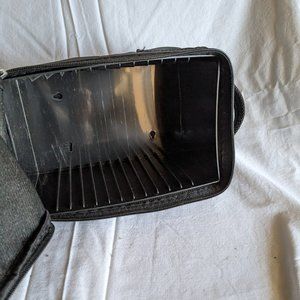 Carry case hold 12 CDs in their cases and measures 8 1/2 x 6 x 5 1/2 inches