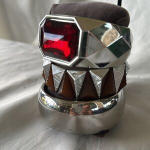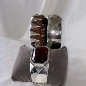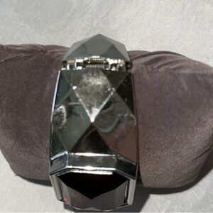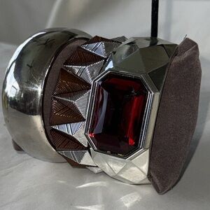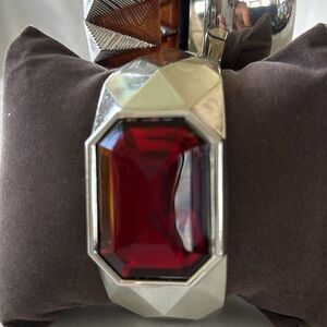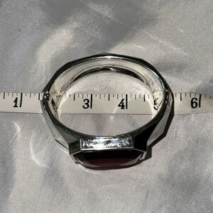 1- Hinged faceted Silver-tone resin bangle features a striking red large acrylic ruby gem. 1.5” Never worn but has light wear from being tossed around in jewelry box