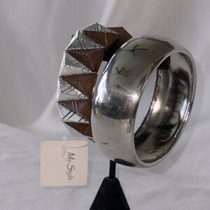 2- Simple Chunky Silver Metal Bangle 1.25” shows minor wear