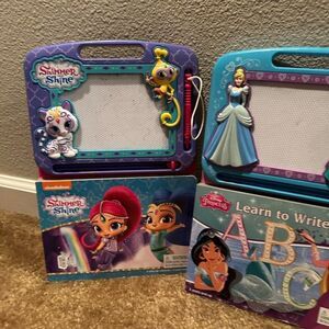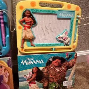 comes with magnetic board to allow child to follow activities or simply to write or color on it