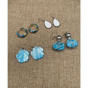 Bundle of Earrings Four Pair of Blue Colored Assorted Styles
