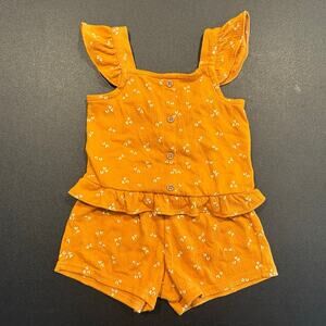 Romper #5: 18 Months (fits 2T easily), Carter's floral ruffle set, orange and white