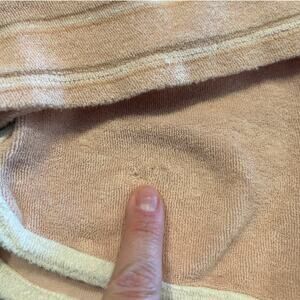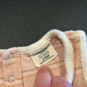 Romper #4: 24 Months, Easy Peasy terry striped set, pink and white - see pics for small spot (appears to be a surface spot that could be removed in wash)