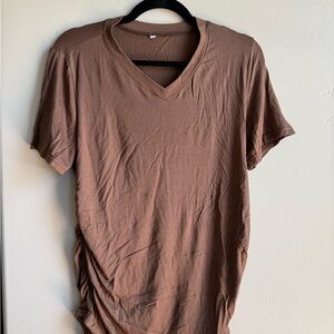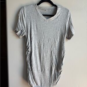 Set of four maternity t shirts.: gray, brown, black, and white. Perfect for casual wear.