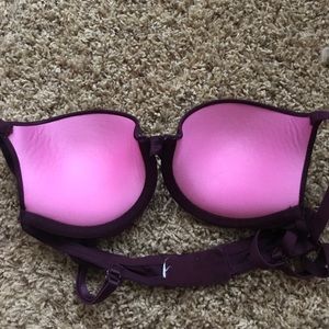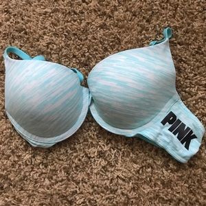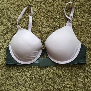 The light grey push up bra is lightly striped with darker grey lines and is size 32B. It has never been worn before so it is brand new with tags on it! The blue, maroon, and light pink push up bras have been worn a couple of times, but are washed and still in great condition.
