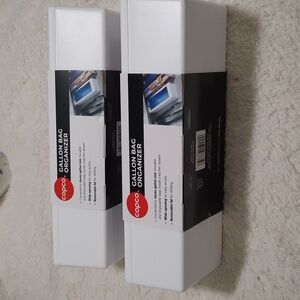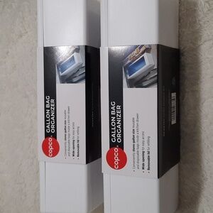 Conveniently stores gallon size reusable and disposable bags inside a kitchen drawer
