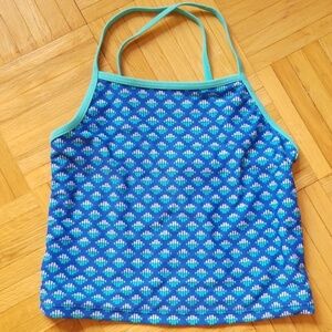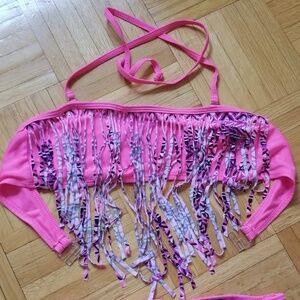 Two versatile bathing suits in excellent condition. Will fit a 10-12 year old. The blue set is Old Navy, the pink frilly set is 2CB.