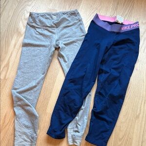 Super cute bundle of two pairs of athletic pants for girls. Nike Pro blue size S - these are that warmer fabric for being out in the cold. Athleta Girl size 12 grey - lightweight and great for spring and summer.