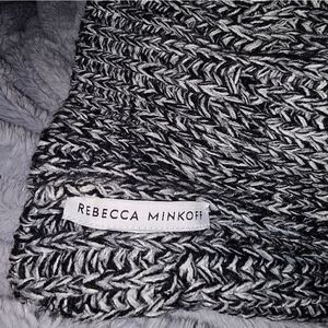 Rebecca Minkoff black and white winter hat with pompom and matching hand warmers with thumb opening.